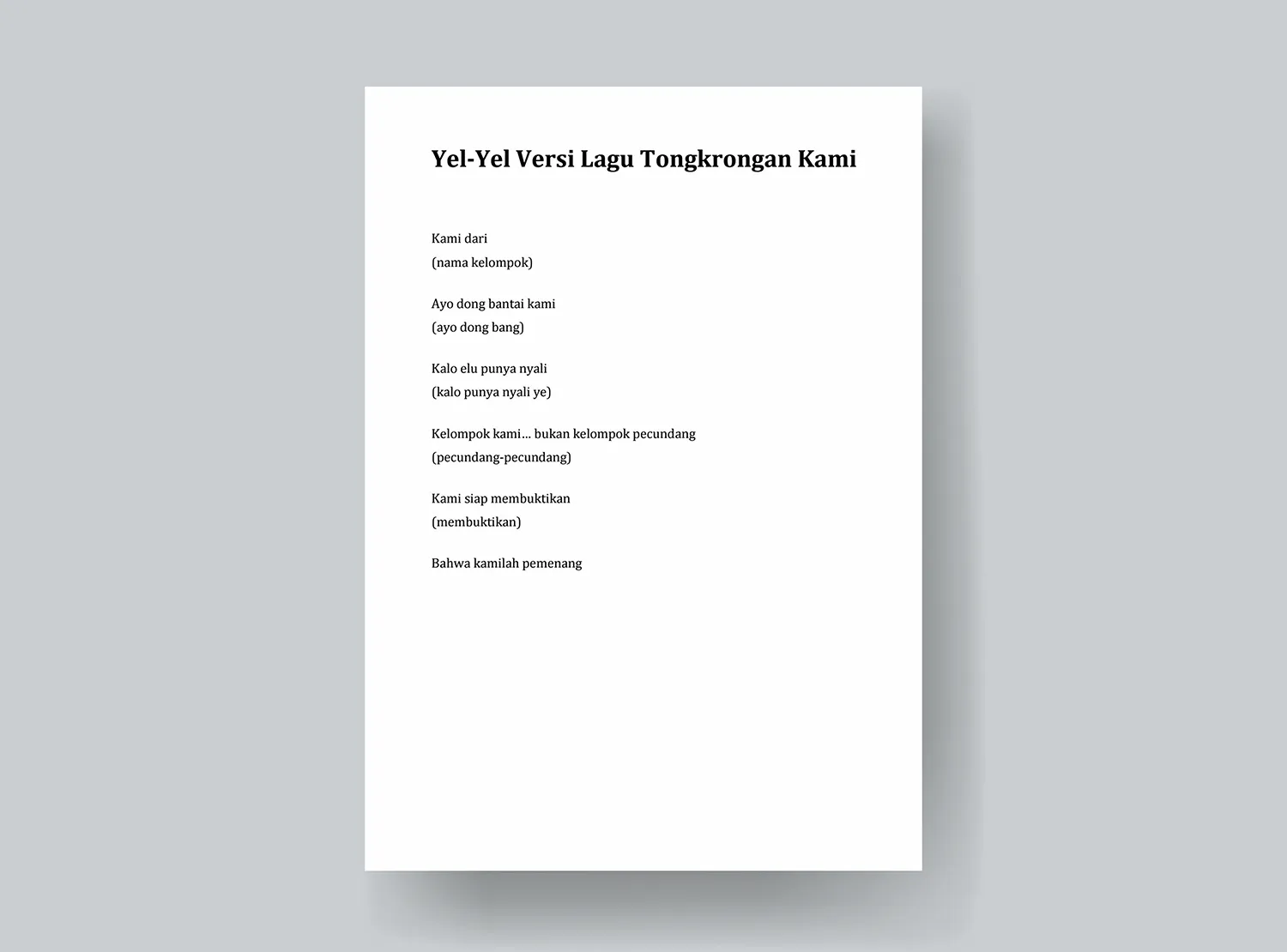 Apakah kelompok Anda sudah punya gambaran untuk membuat yel-yel? Silakan tulis tanggapan atau pertanyaan Anda melalui kolom komentar di bawah ini. Selamat mencoba dan terima kasih!
