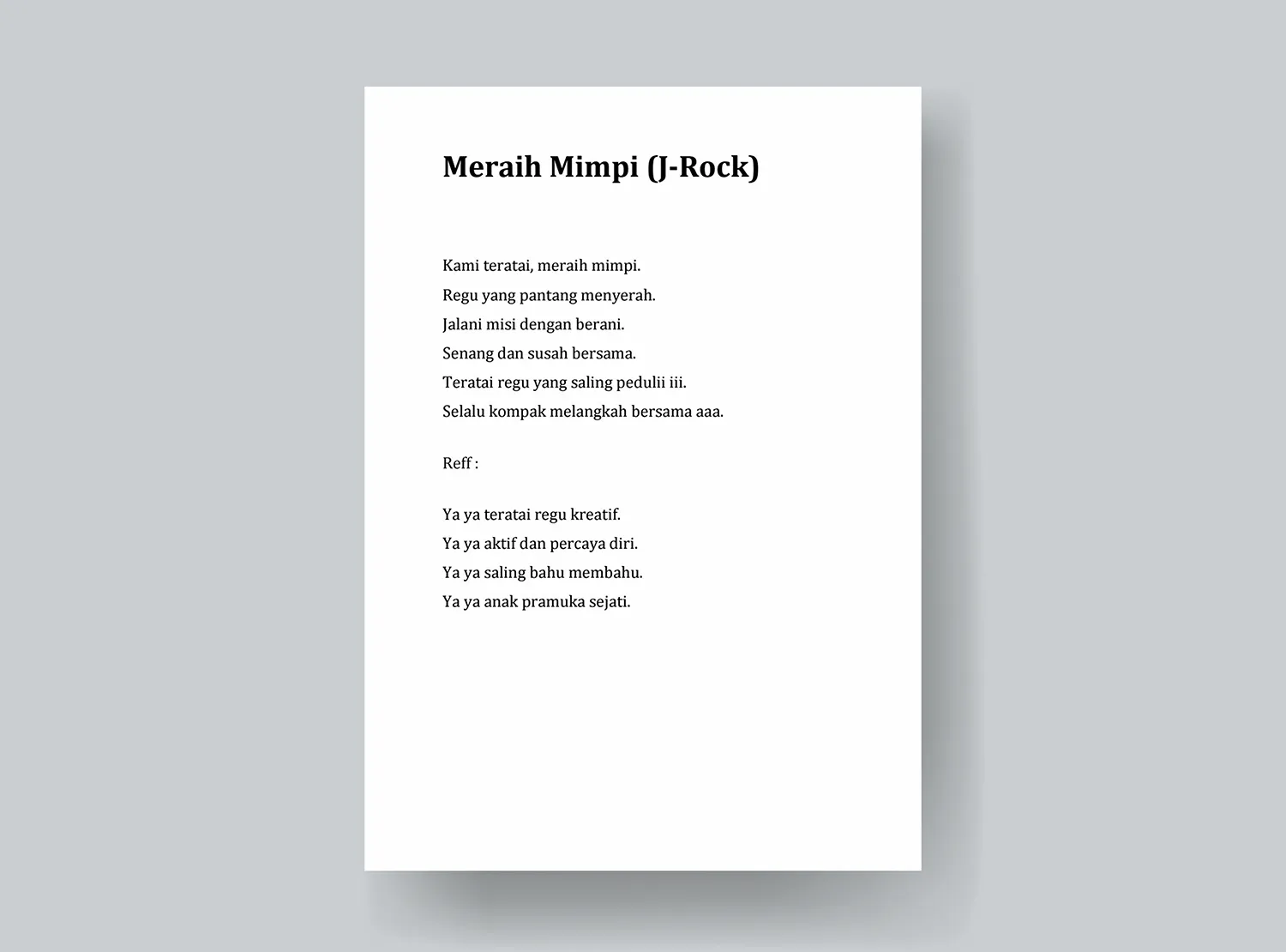 Kegiatan pramuka merupakan bagian dari ekstrakurikuler yang wajib diikuti oleh semua siswa dari tingkat SD, SMP, hingga SMA dan sejenisnya. Pramuka atau kepanjangan dari Praja Muda Karana termasuk salah satu kegiatan yang akan melatih para siswa untuk mandiri, disiplin, memimpin, gotong-royong, setia kawan, teguh, dan memiliki semangat juang yang tinggi. Salah satu penyemangat yang sering kali dinyanyikan kelompok pramuka adalah yel-yel. Mengikuti bidang kepramukaan pastinya tidak akan lepas dengan sorakkan yel-yel ini.
