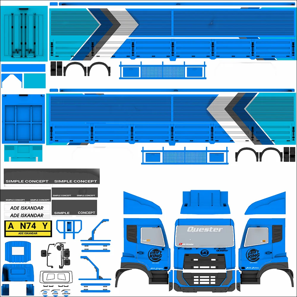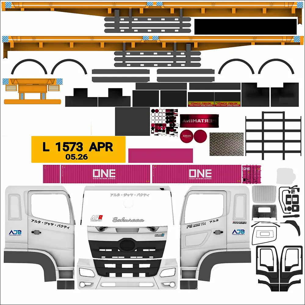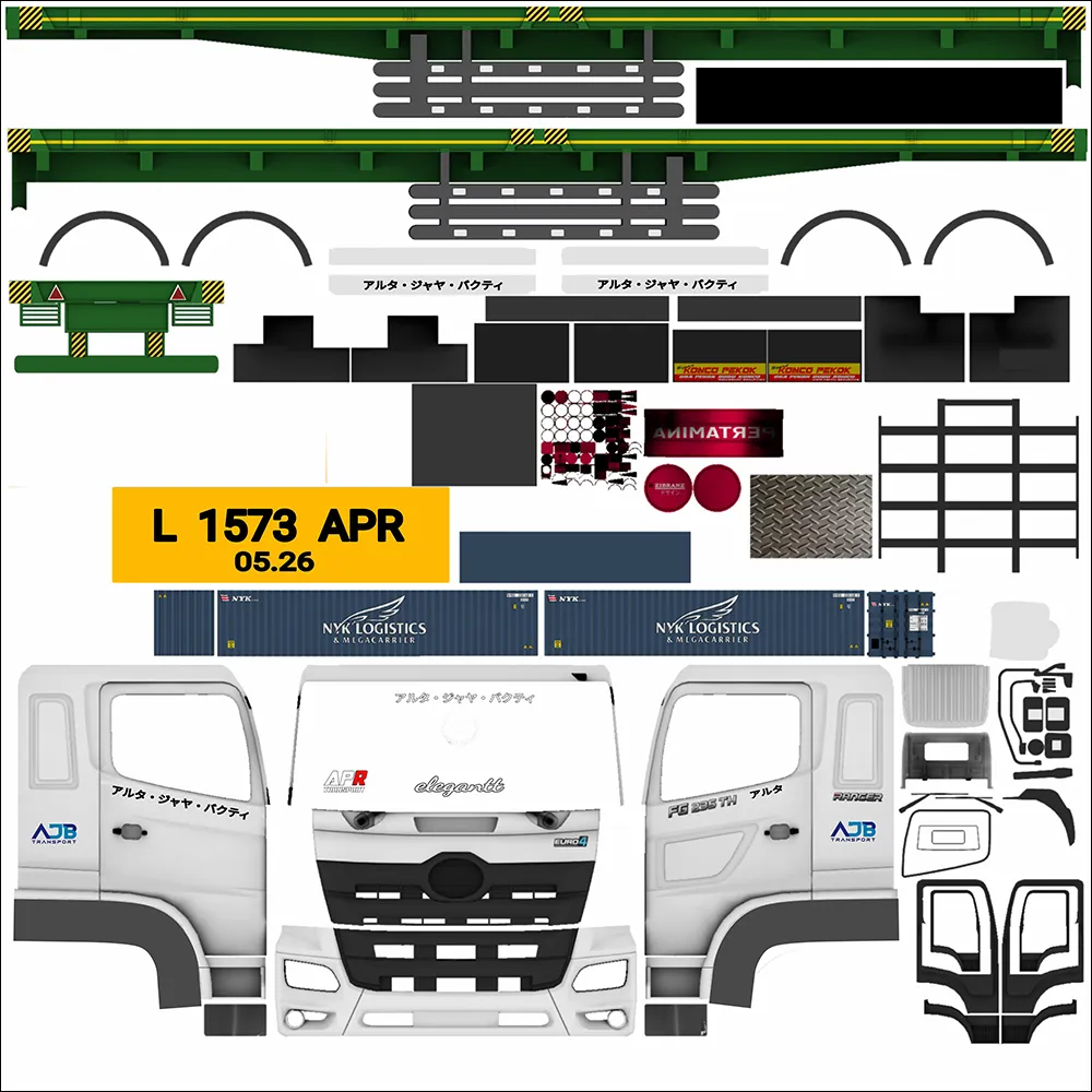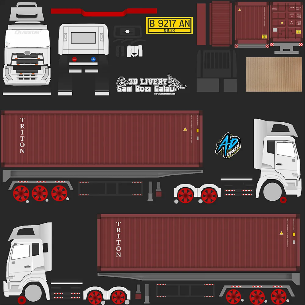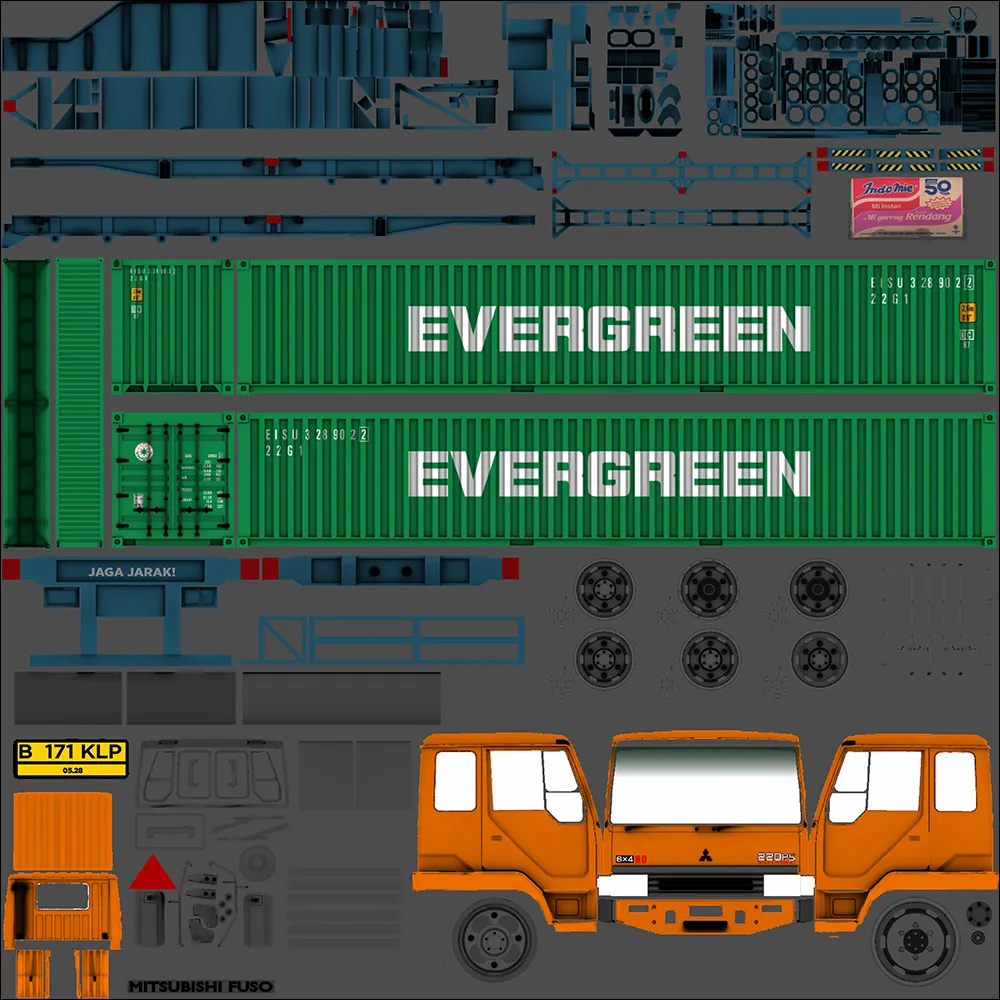 Selain disebut sebagai truck peti kemas, kendaraan ini juga umum dipanggil dengan truck trailer. Hal ini karena truck tersebut memiliki engsel penggandeng yang dapat dilepas/pasang untuk menarik wadah muatan ke tempat yang ditentukan. Roda pada trailernya sendiri bisa berjumlah 4 maupun 6 tergantung pada panjang dan besarnya muatan. Di Indonesia, truck peti kemas bisa dijumpai pada jalur menuju pelabuhan misalnya seperti Merak, Tanjung Priok, Ketapang dan lainnya. Pada kesempatan ini kami menyediakan Livery sekaligus MOD truck peti kemas. Jadi pastikan untuk mengunduh kedua file tersebut di bawah sesuai namanya untuk mendapatkan hasil akhir yang tepat. Untuk tutorial pemasangan Livery maupun MOD nya dapat Anda temukan dibagian terbawah setelah daftar.