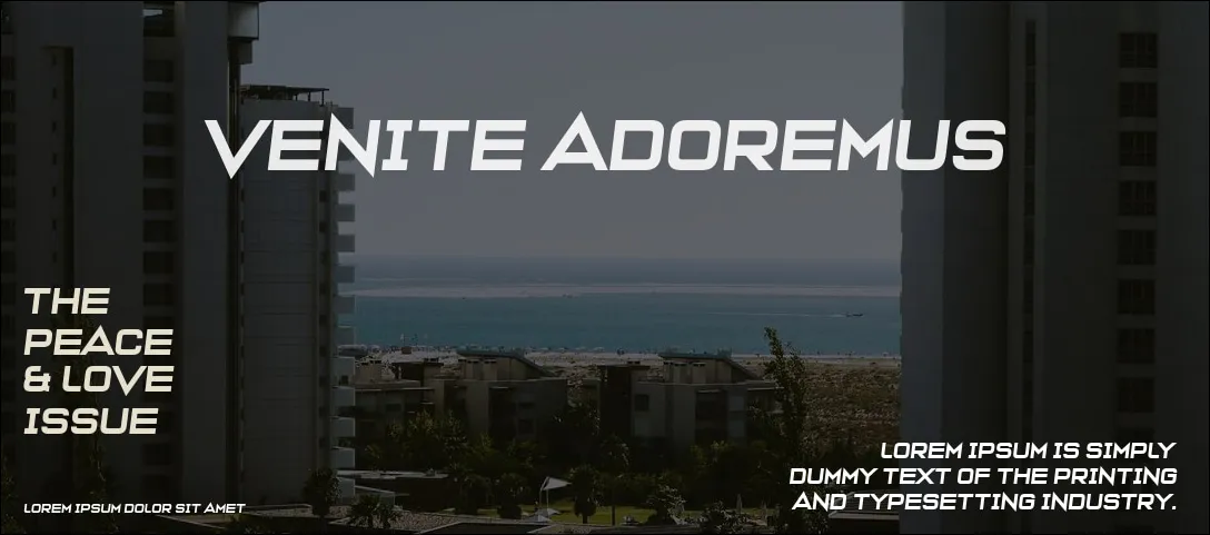 Venite Adoremus memiliki desain futuristik dengan garis-garis lebar yang bersih. Cocok digunakan untuk desain branding, periklanan, dan desain lainnya.