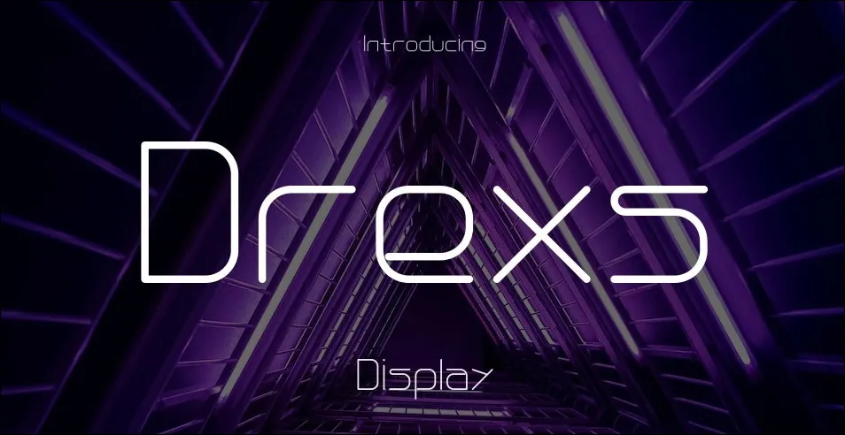 Drexs merupakan font sans-serif dengan garis-garis tipis dan desain futuristik. Cocok digunakan untuk desain-desain yang ingin menampilkan kesan ketajaman dan kekuatan, seperti dalam pembuatan logo atau desain merchandise.
