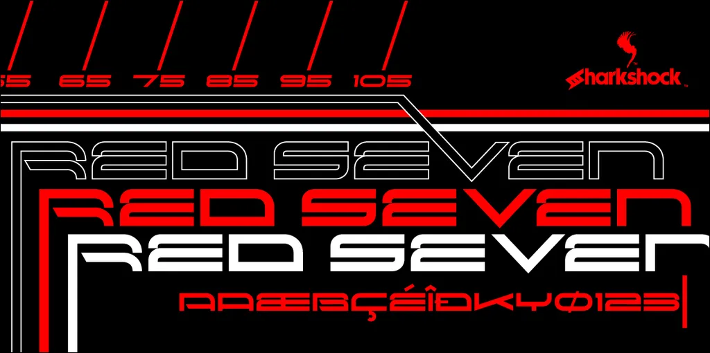 Red Seven memberikan kesan yang agresif dan kuat dengan bentuk fisik yang tegas dan berani. Cocok digunakan untuk desain yang ingin menonjolkan kesan dinamis dan penuh energi, seperti pada logo olahraga atau desain merchandise.