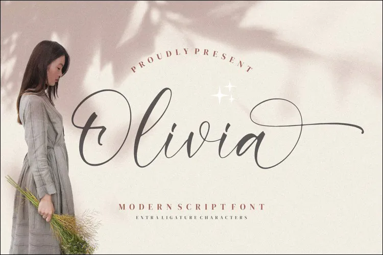 Olivia adalah font yang penuh dengan kelembutan dan kesan romantis. Dengan gaya yang mengalir dan detail yang halus, font ini cocok digunakan untuk undangan pernikahan atau acara khusus lainnya.