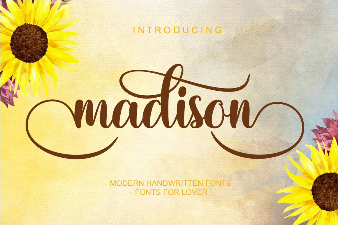 Madison adalah font yang modern dan stylish. Cocok digunakan untuk undangan-acara yang ingin tampil trendi dan up-to-date. Font ini memberikan kesan yang segar dan berkelas.
