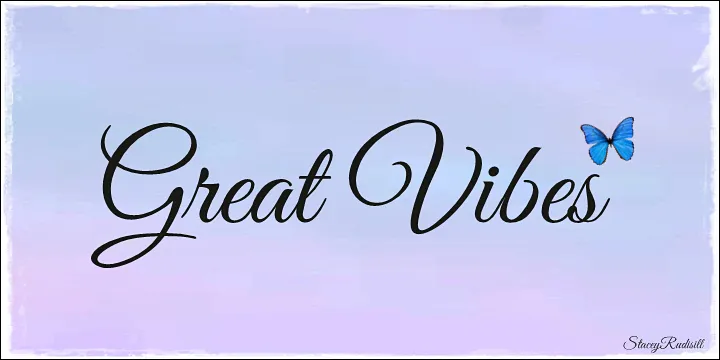 Great Vibes adalah font yang anggun dan romantis. Dengan gaya yang mengalir dan detail yang halus, font ini cocok digunakan untuk undangan pernikahan atau acara khusus lainnya.