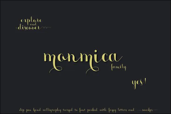 Monmica adalah font yang modern dan bersih. Dengan desainnya yang sederhana namun elegan, font ini cocok digunakan untuk berbagai jenis undangan, mulai dari yang formal hingga yang lebih santai.