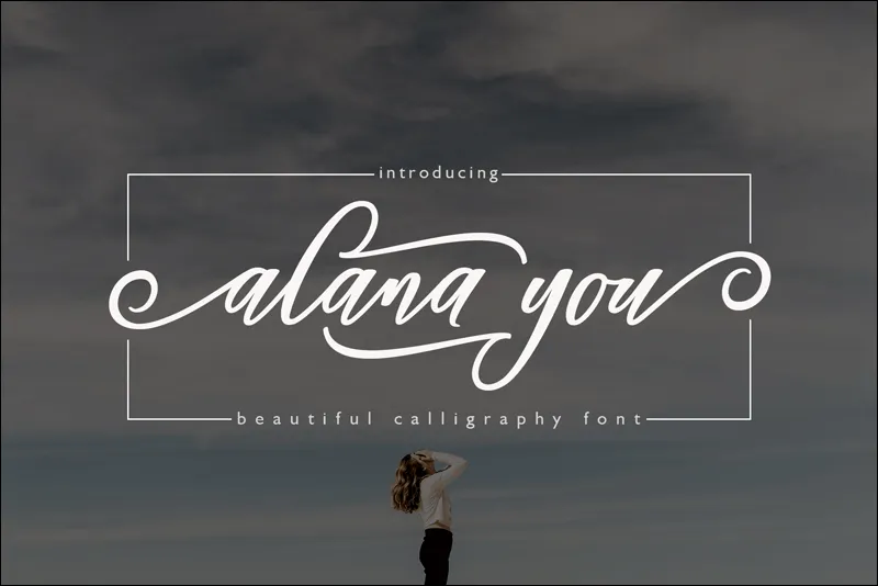 Alana You adalah font yang penuh dengan nuansa romantis dan glamor. Dengan gaya yang mengalir dan detail yang anggun, font ini cocok digunakan untuk undangan pernikahan atau acara khusus lainnya.