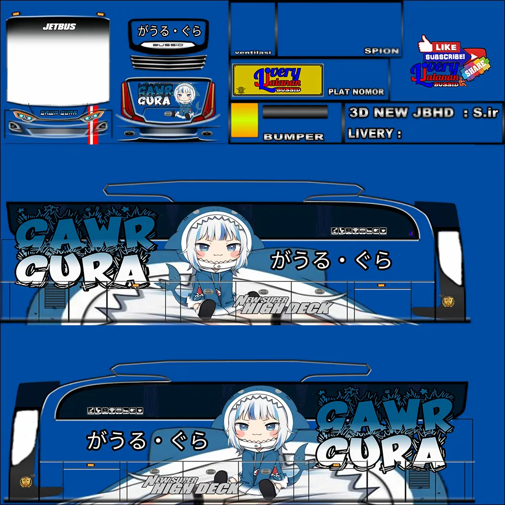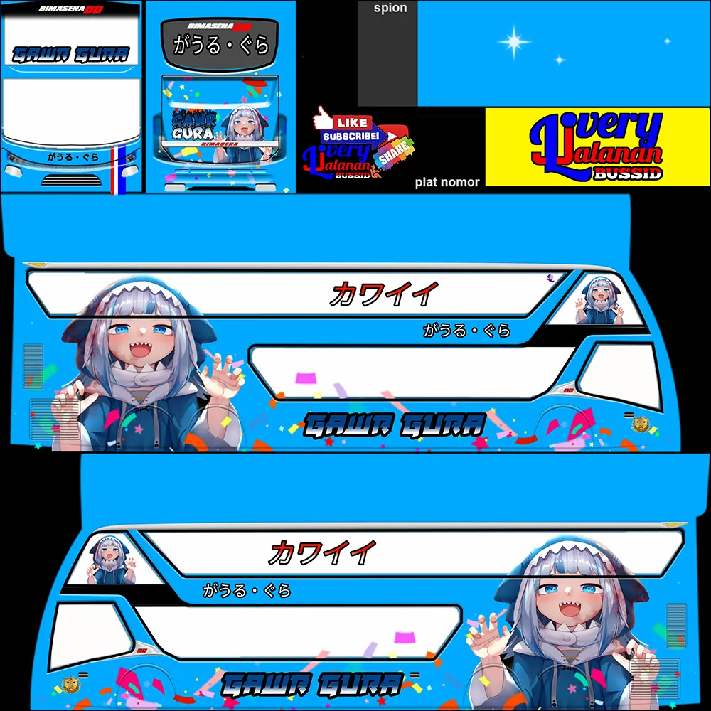 Livery yang kami sediakan kali ini tidak semua karakternya berasal dari sebuah Anime, namun kami mengambilnya beberapa dari karakter game maupun vtuber dan lainnya. Yang mana karakter tersebut masih memiliki unsur dari gaya art Anime. Kami menjamin kualitas Livery yang disediakan dalam resolusi besar dan berkualitas jernih.