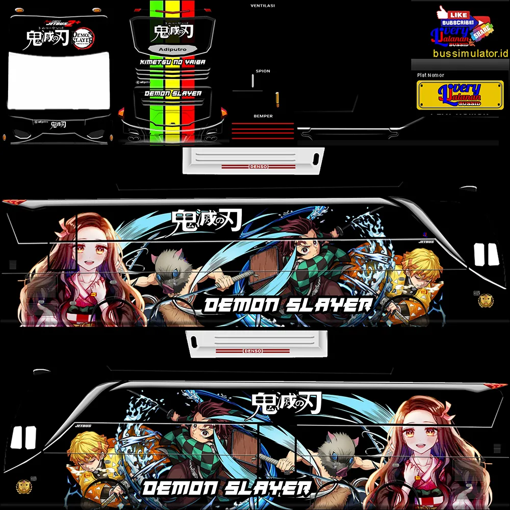 Berikut kami bagikan kumpulan Livery BUSSID Anime, Demon Slayer, Genshin Impact, paling jernih dan terbaru, varian HD, XHD, SDD, Jetbus...