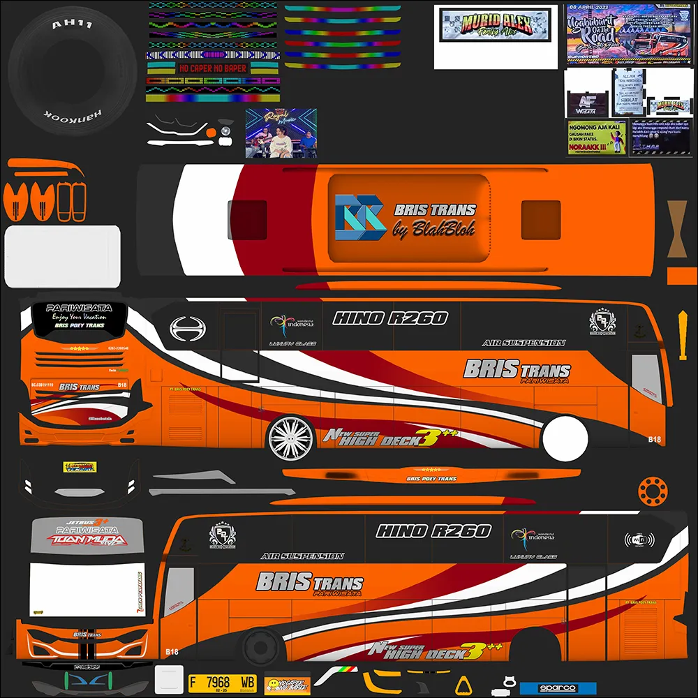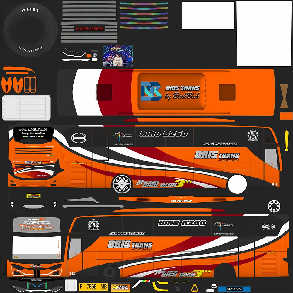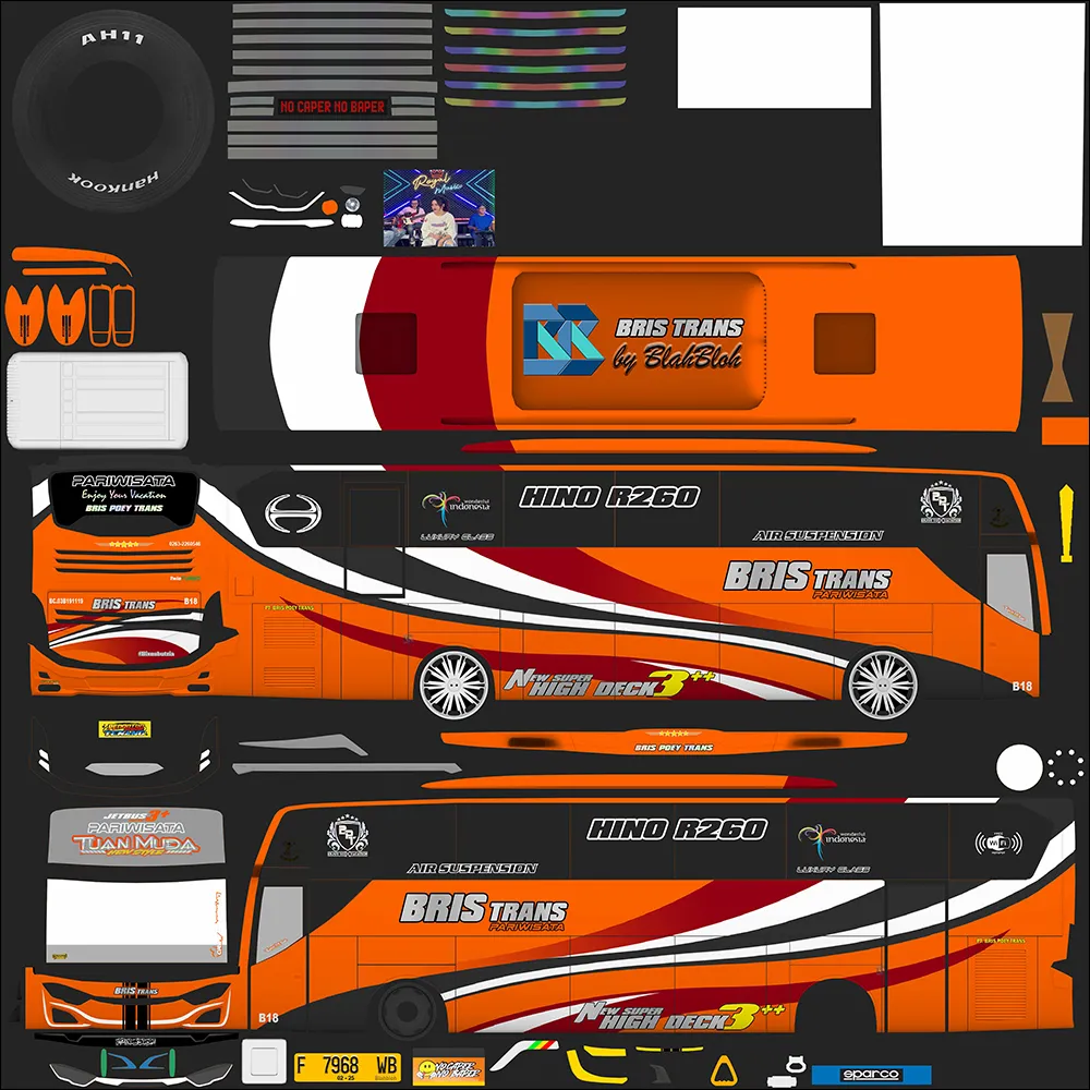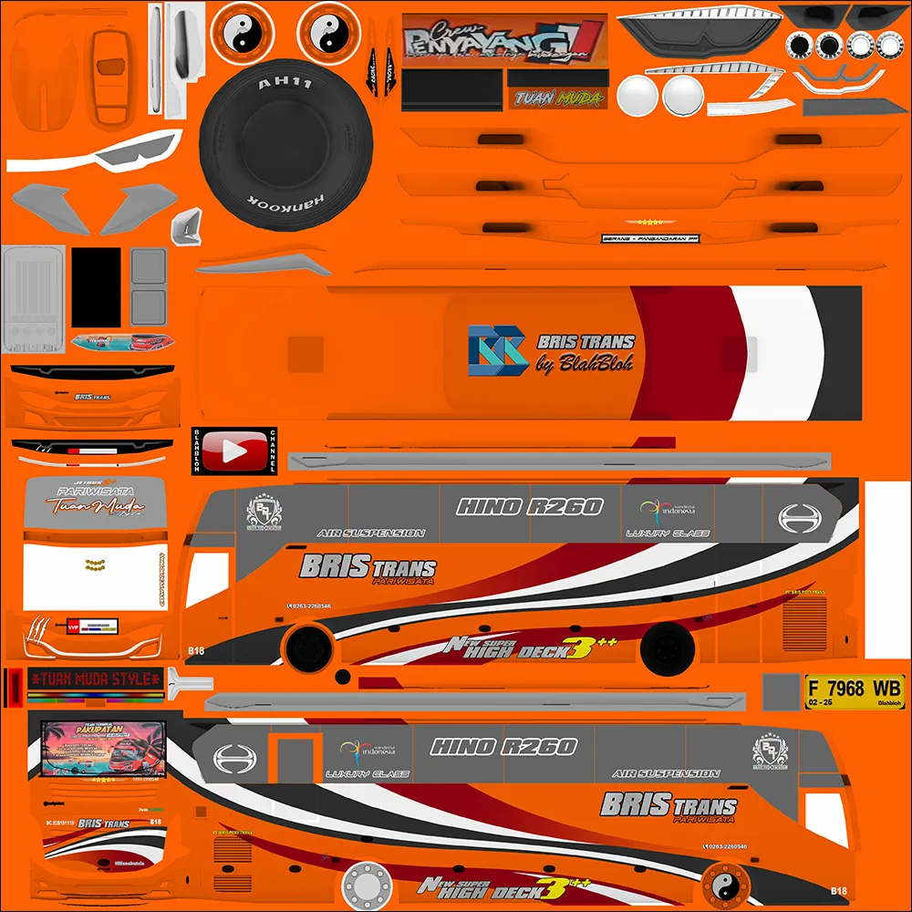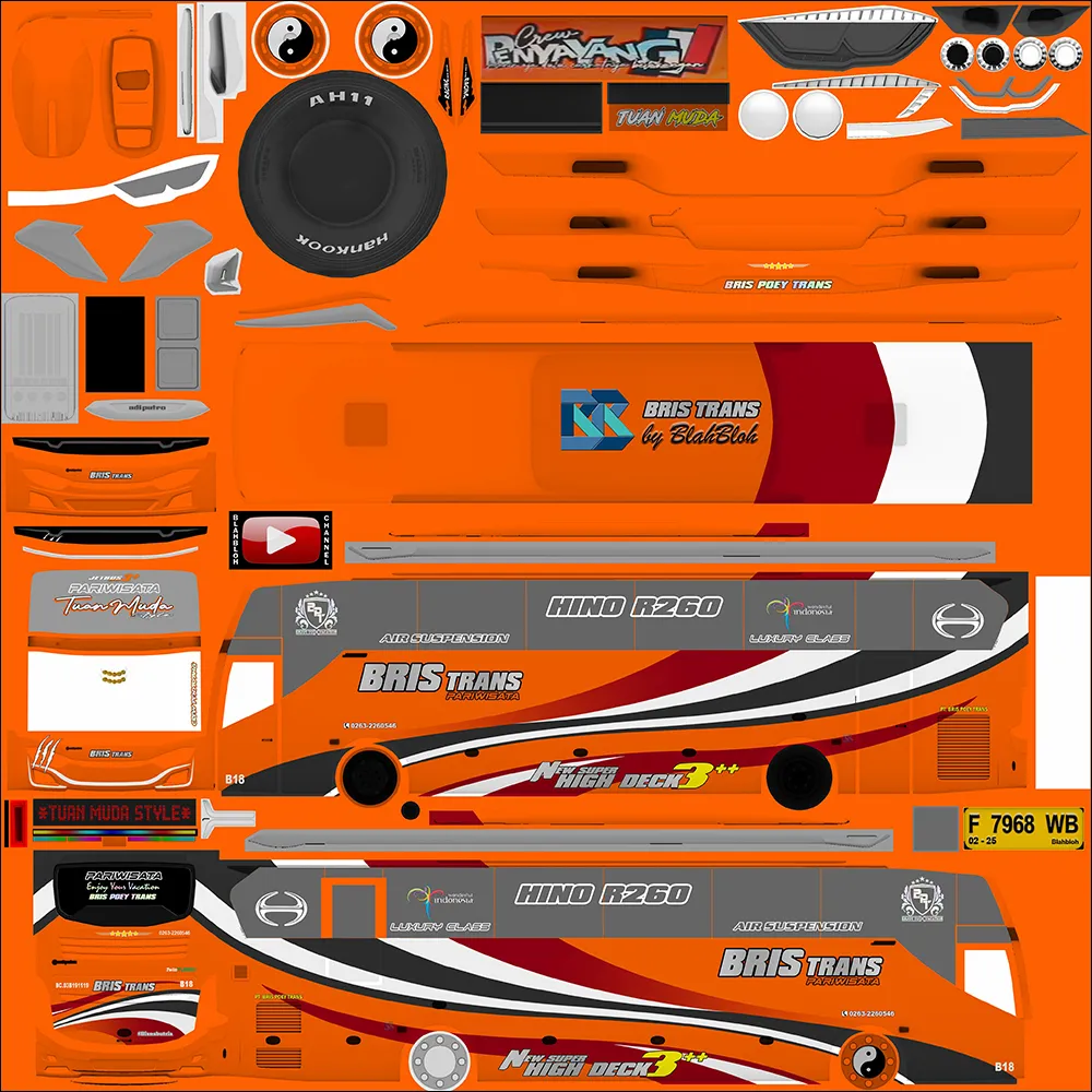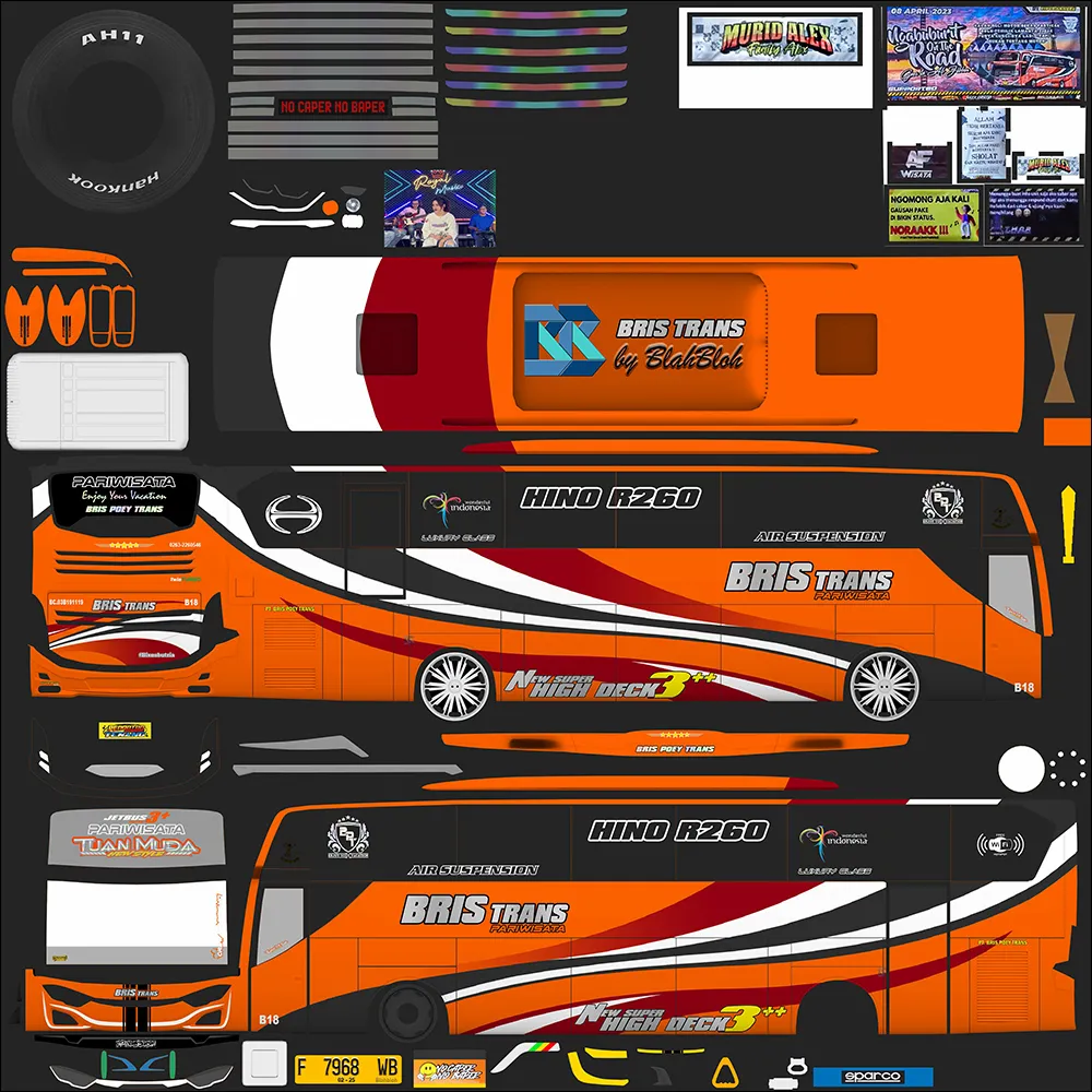 Apalagi Anda dibebaskan menggunakan fitur kustom MOD maupun Garasi yang memungkinkan pemain untuk mengganti jenis bus yang mereka mau. Bahkan Anda dapat mendekor bus dengan Livery secara gratis, terkait hal ini Livery Bris Trans Tuan Muda beserta beberapa jenis bus lainnya (HD, SDD, SHD, UHD, dan XHD). Kami menjamin kualitas Jernih dari Livery yang telah kami siapkan di bawah ini.