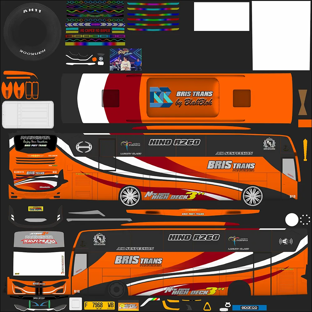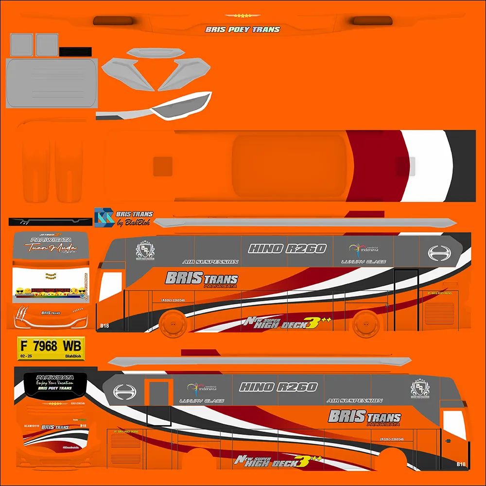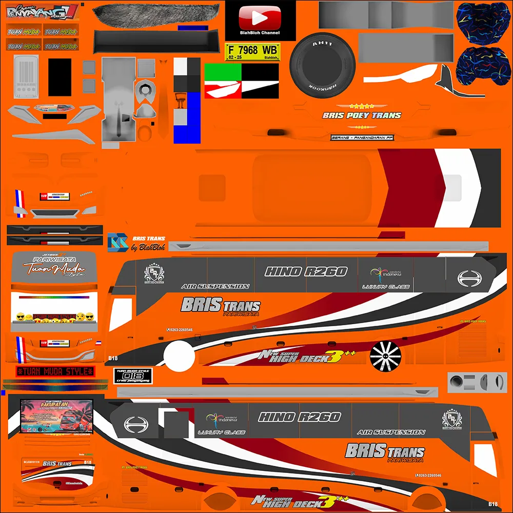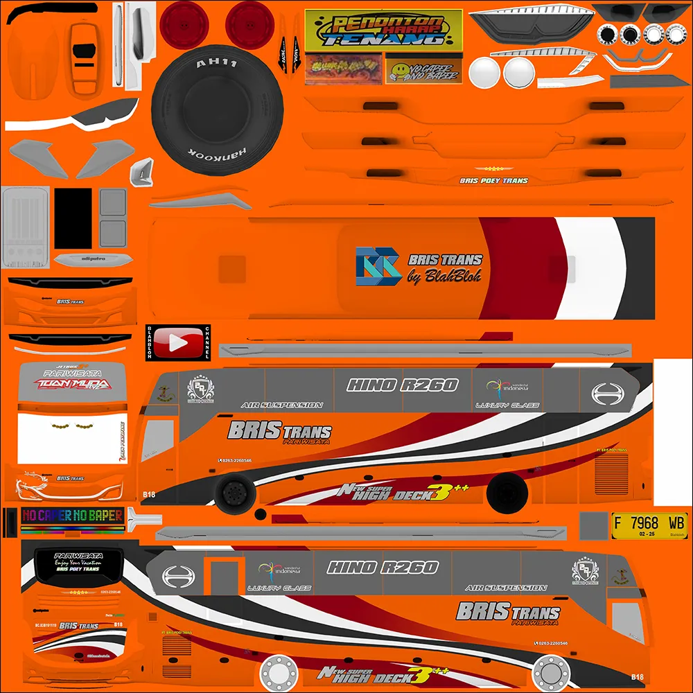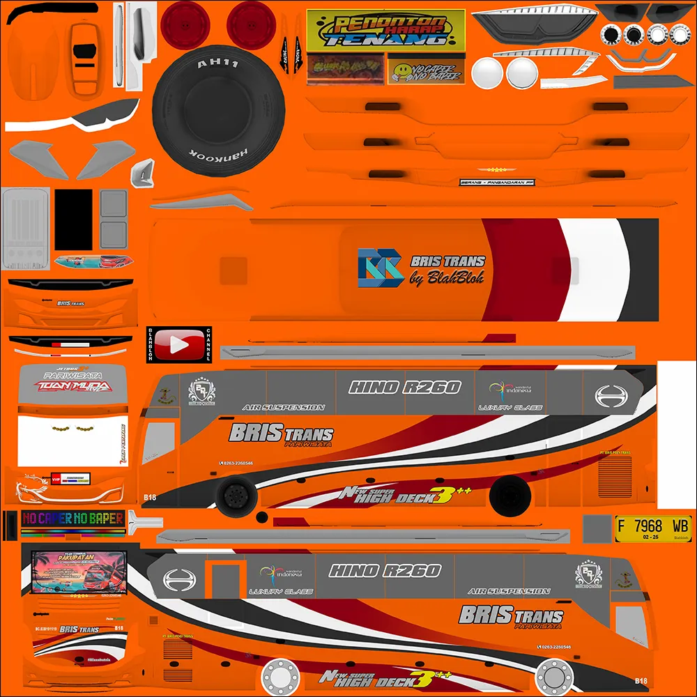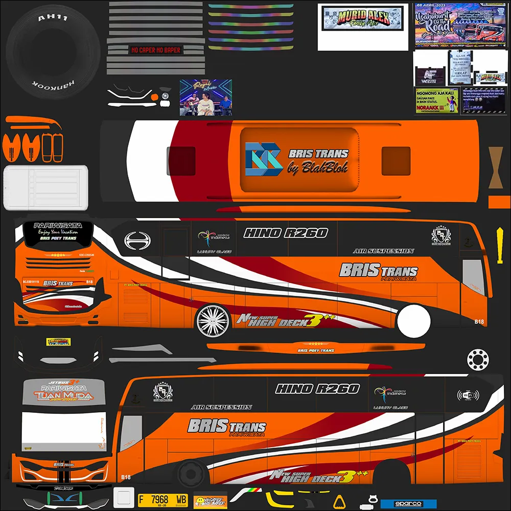 Apalagi Anda dibebaskan menggunakan fitur kustom MOD maupun Garasi yang memungkinkan pemain untuk mengganti jenis bus yang mereka mau. Bahkan Anda dapat mendekor bus dengan Livery secara gratis, terkait hal ini Livery Bris Trans Tuan Muda beserta beberapa jenis bus lainnya (HD, SDD, SHD, UHD, dan XHD). Kami menjamin kualitas Jernih dari Livery yang telah kami siapkan di bawah ini.
