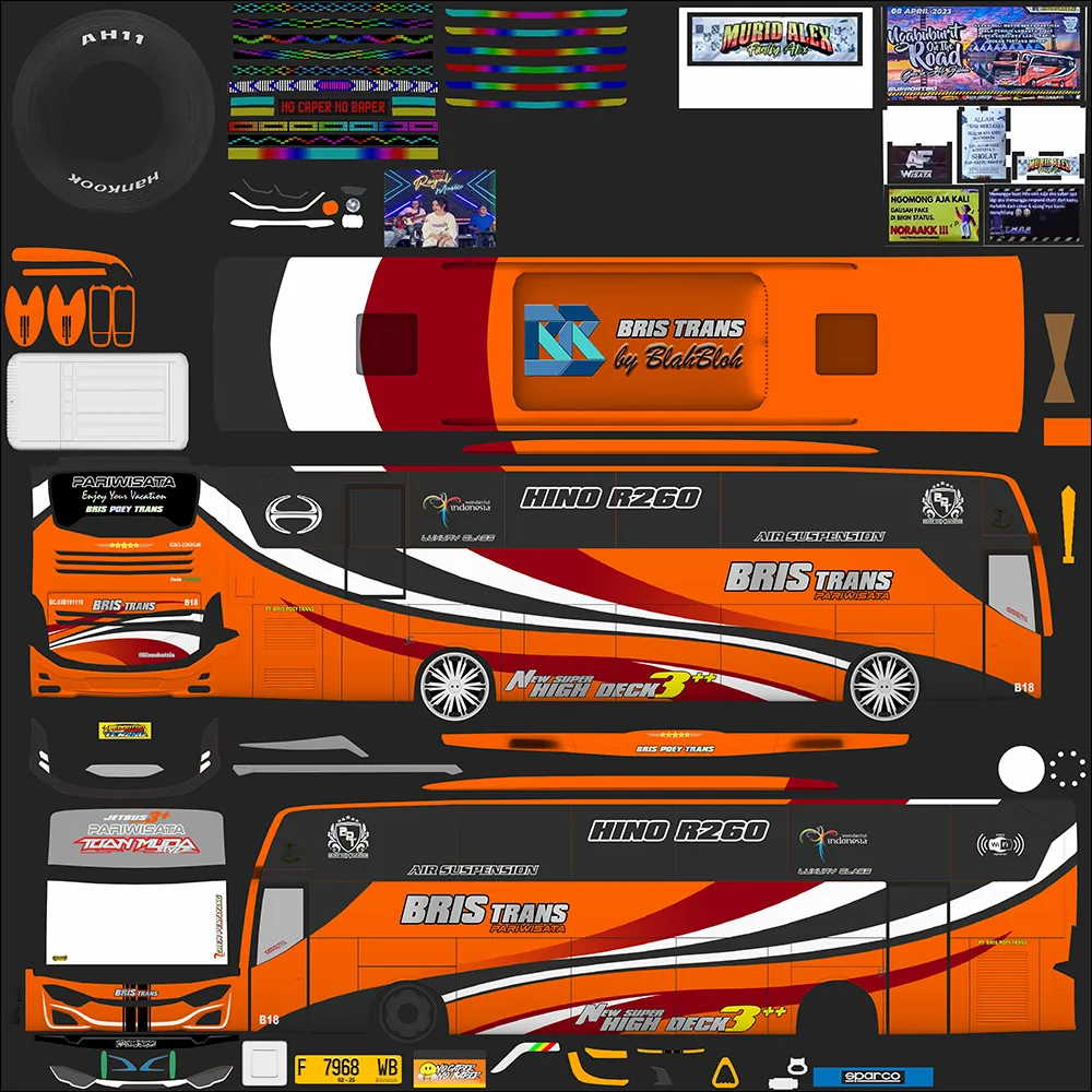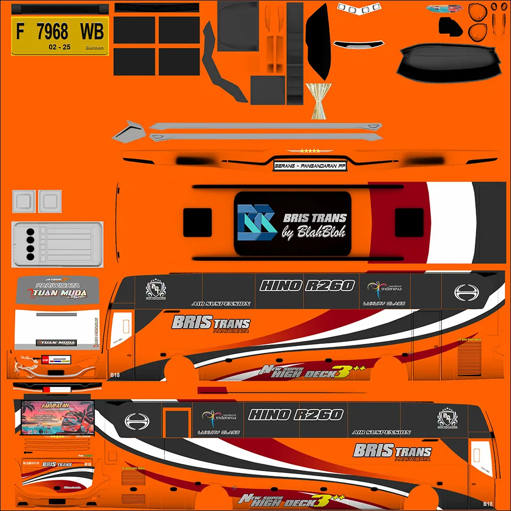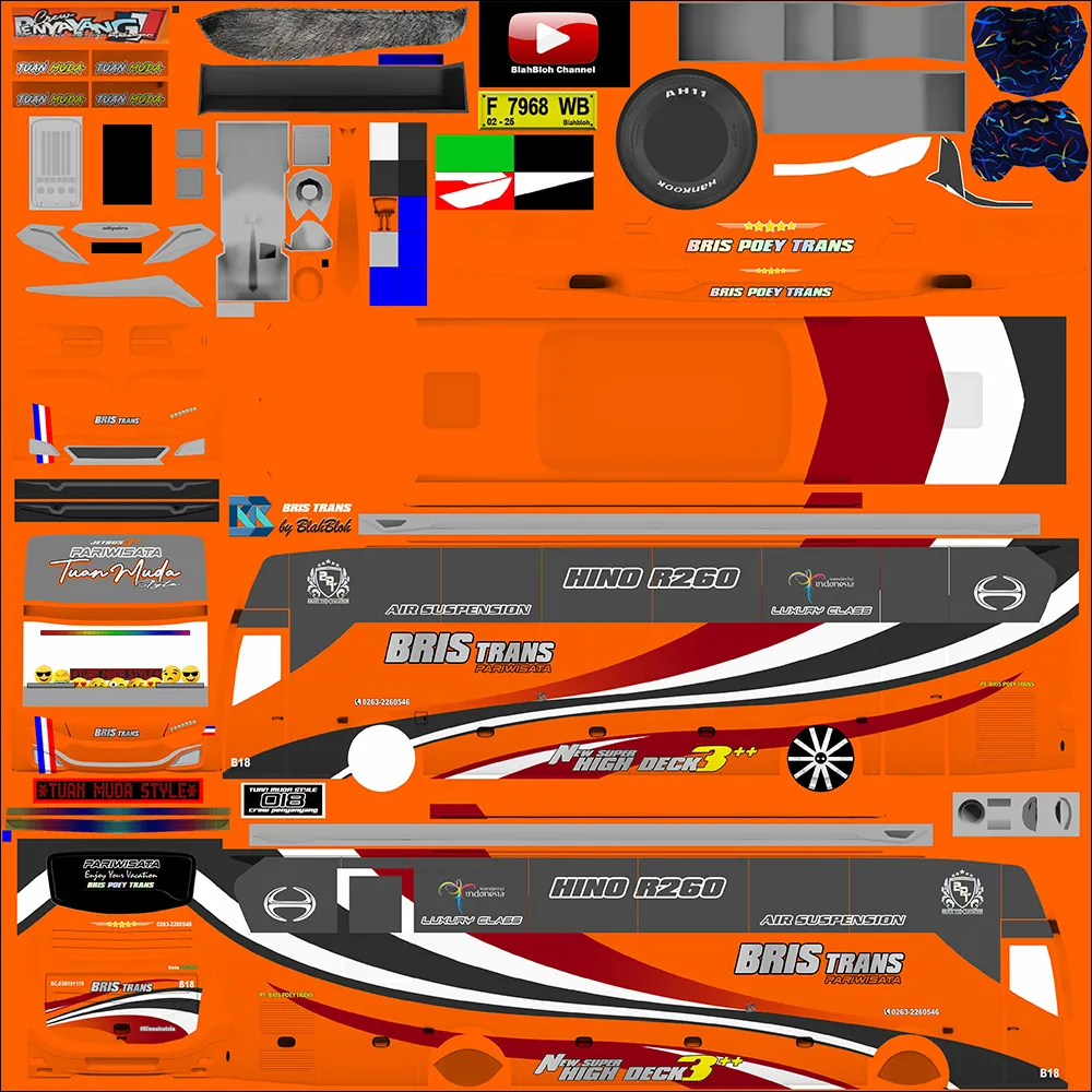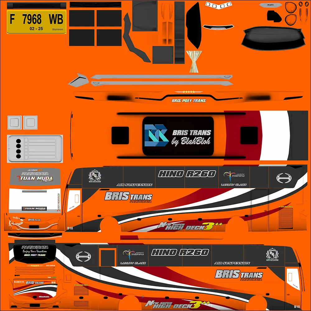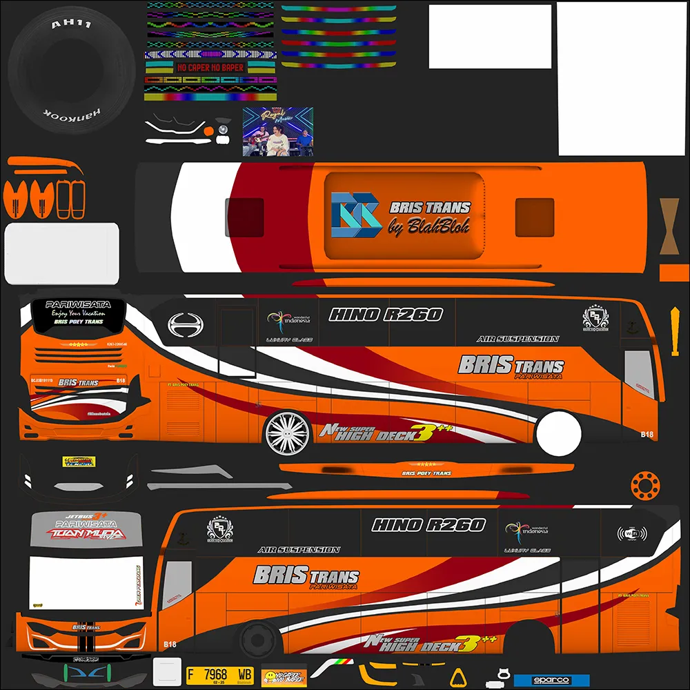 Apalagi Anda dibebaskan menggunakan fitur kustom MOD maupun Garasi yang memungkinkan pemain untuk mengganti jenis bus yang mereka mau. Bahkan Anda dapat mendekor bus dengan Livery secara gratis, terkait hal ini Livery Bris Trans Tuan Muda beserta beberapa jenis bus lainnya (HD, SDD, SHD, UHD, dan XHD). Kami menjamin kualitas Jernih dari Livery yang telah kami siapkan di bawah ini.