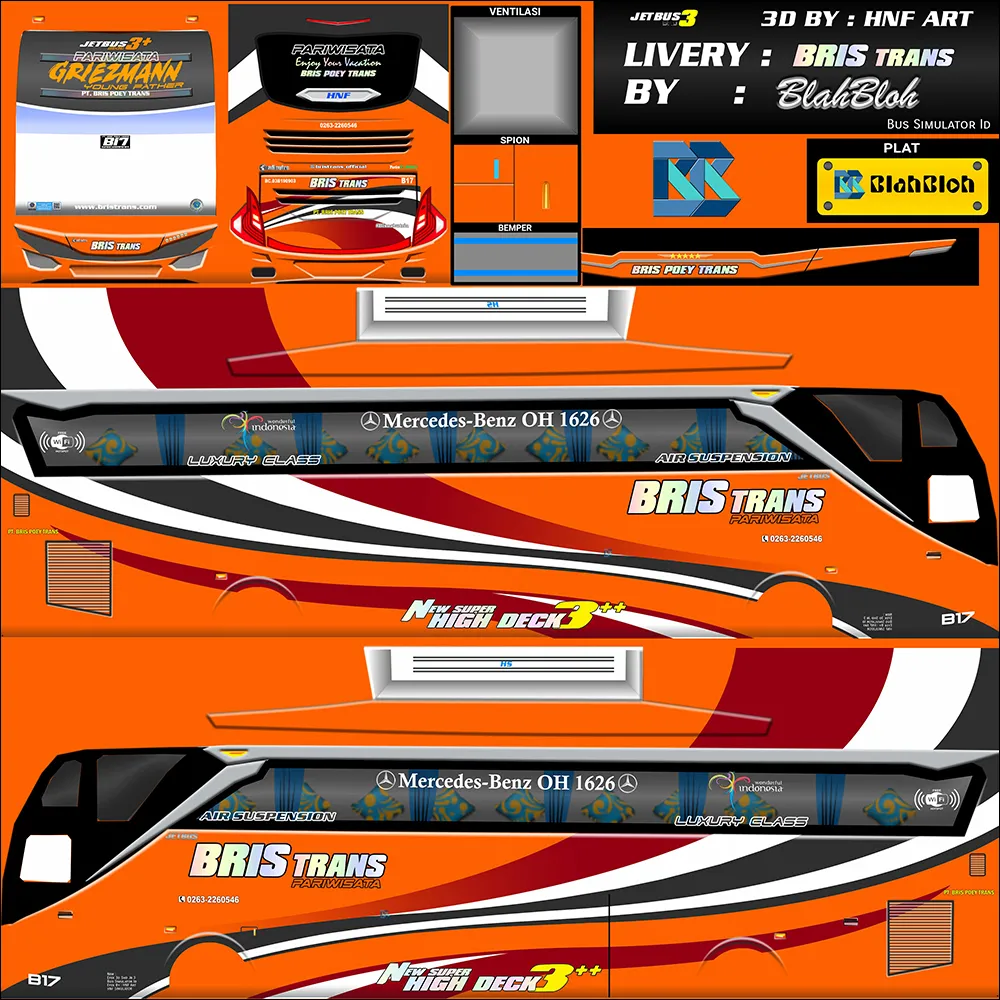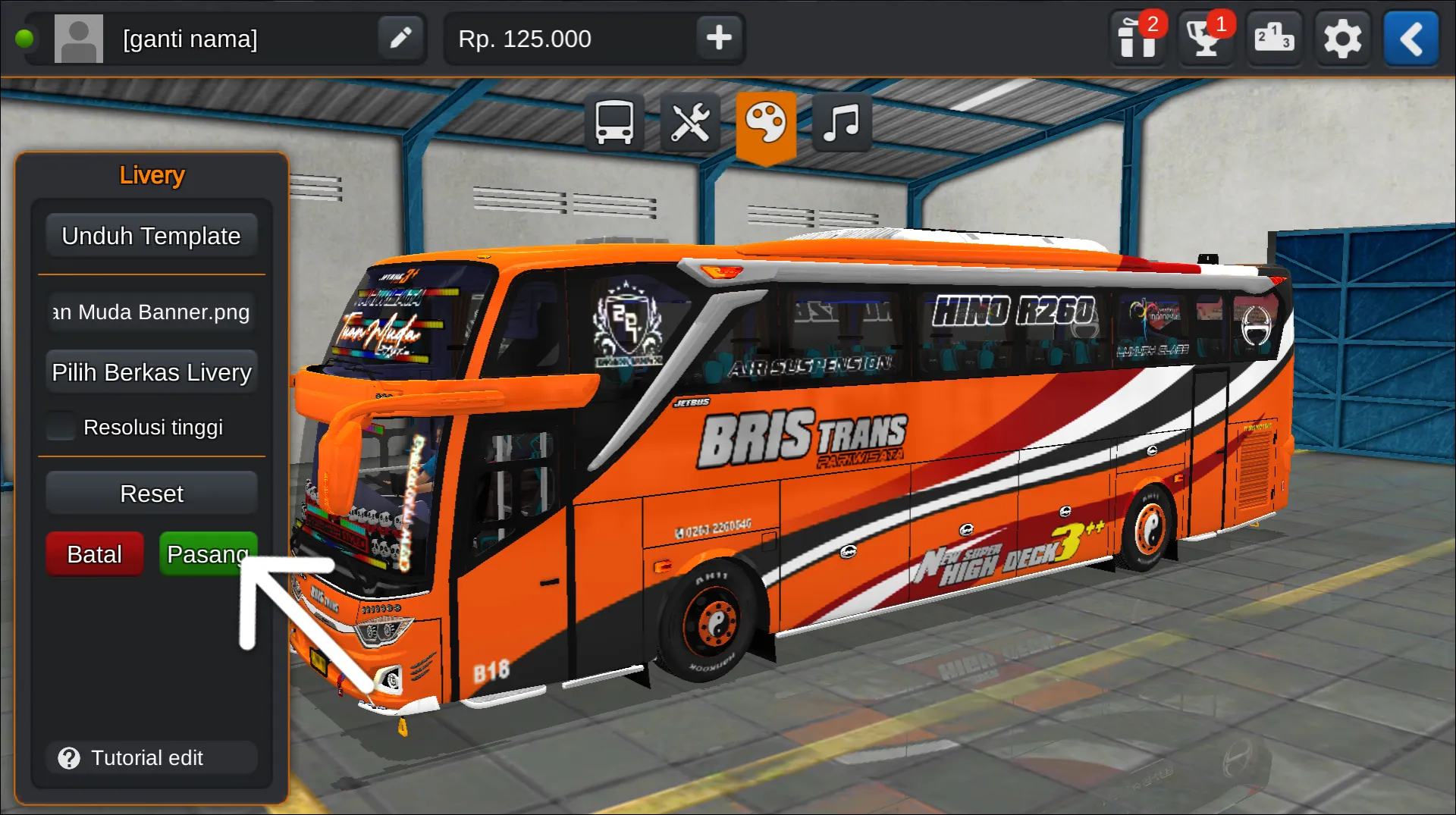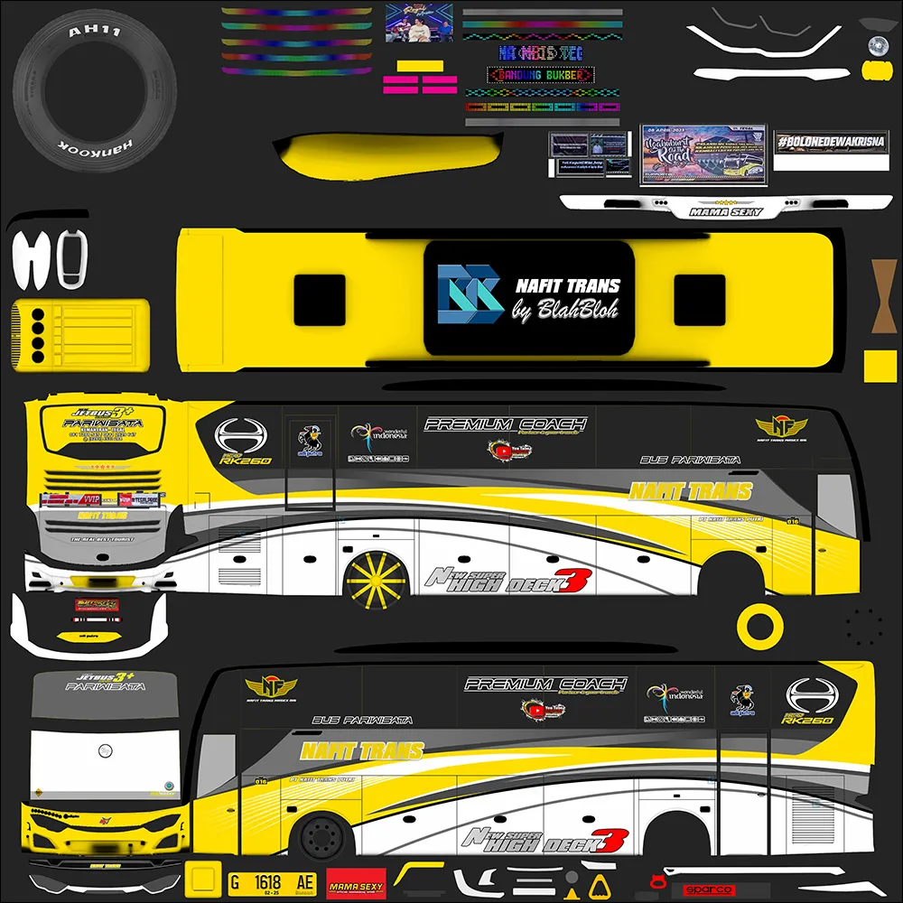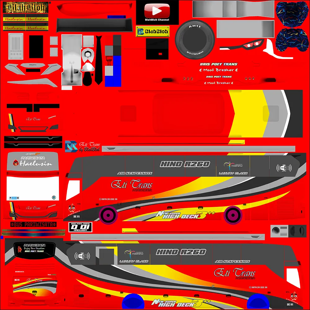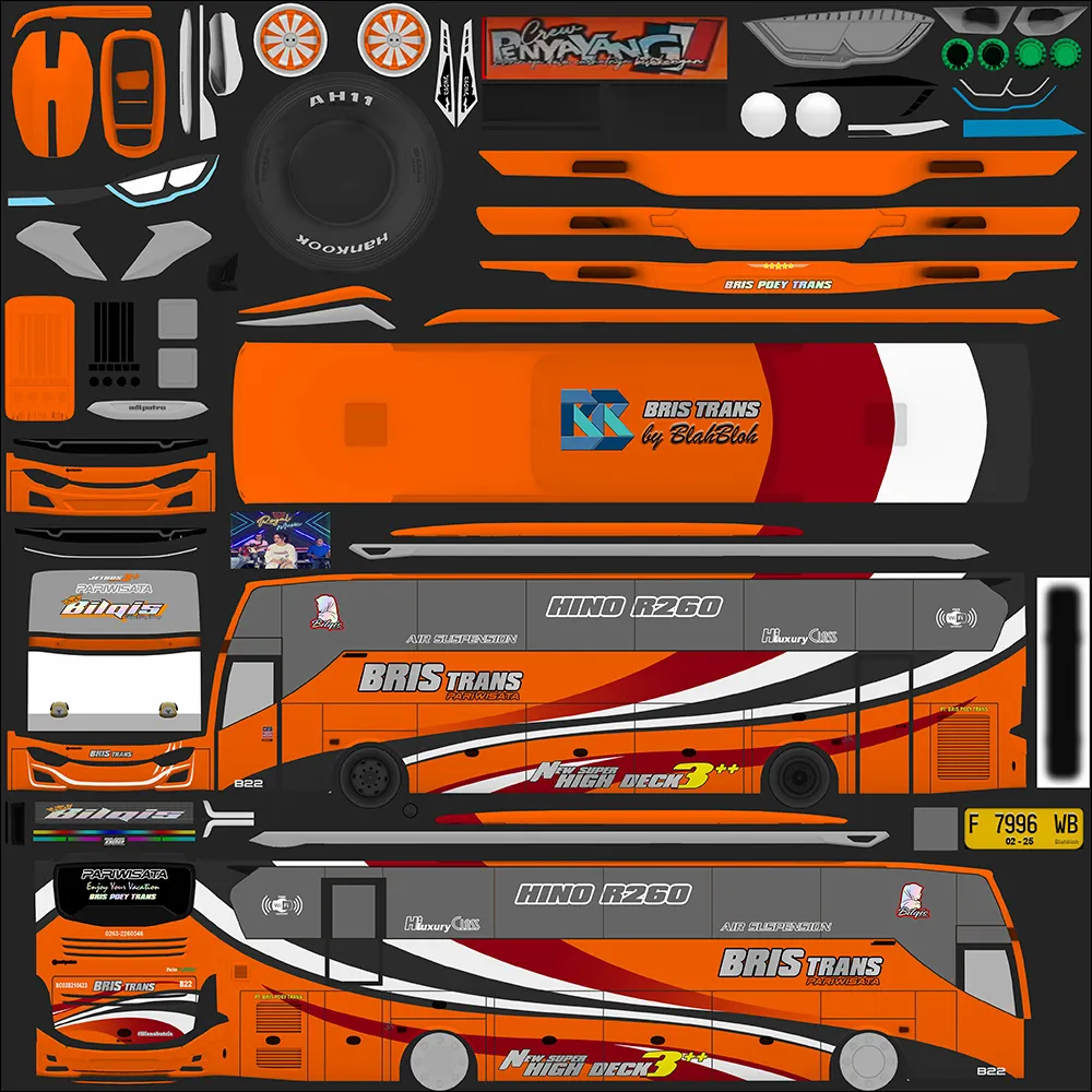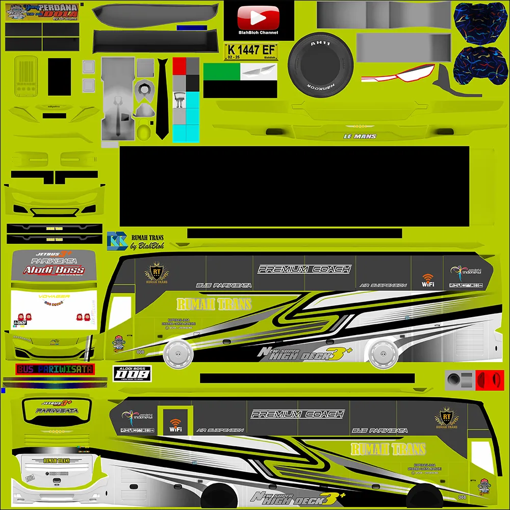Apalagi Anda dibebaskan menggunakan fitur kustom MOD maupun Garasi yang memungkinkan pemain untuk mengganti jenis bus yang mereka mau. Bahkan Anda dapat mendekor bus dengan Livery secara gratis, terkait hal ini Livery Bris Trans Tuan Muda beserta beberapa jenis bus lainnya (HD, SDD, SHD, UHD, dan XHD). Kami menjamin kualitas Jernih dari Livery yang telah kami siapkan di bawah ini.