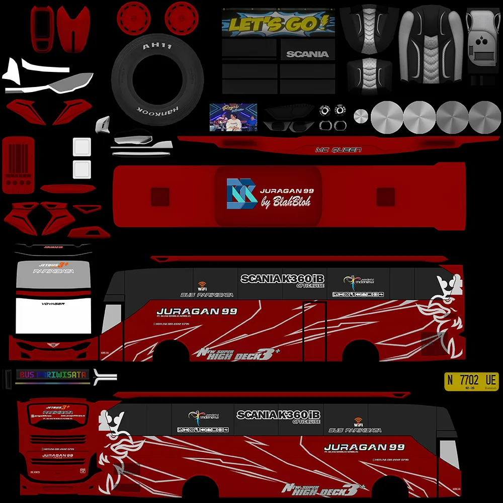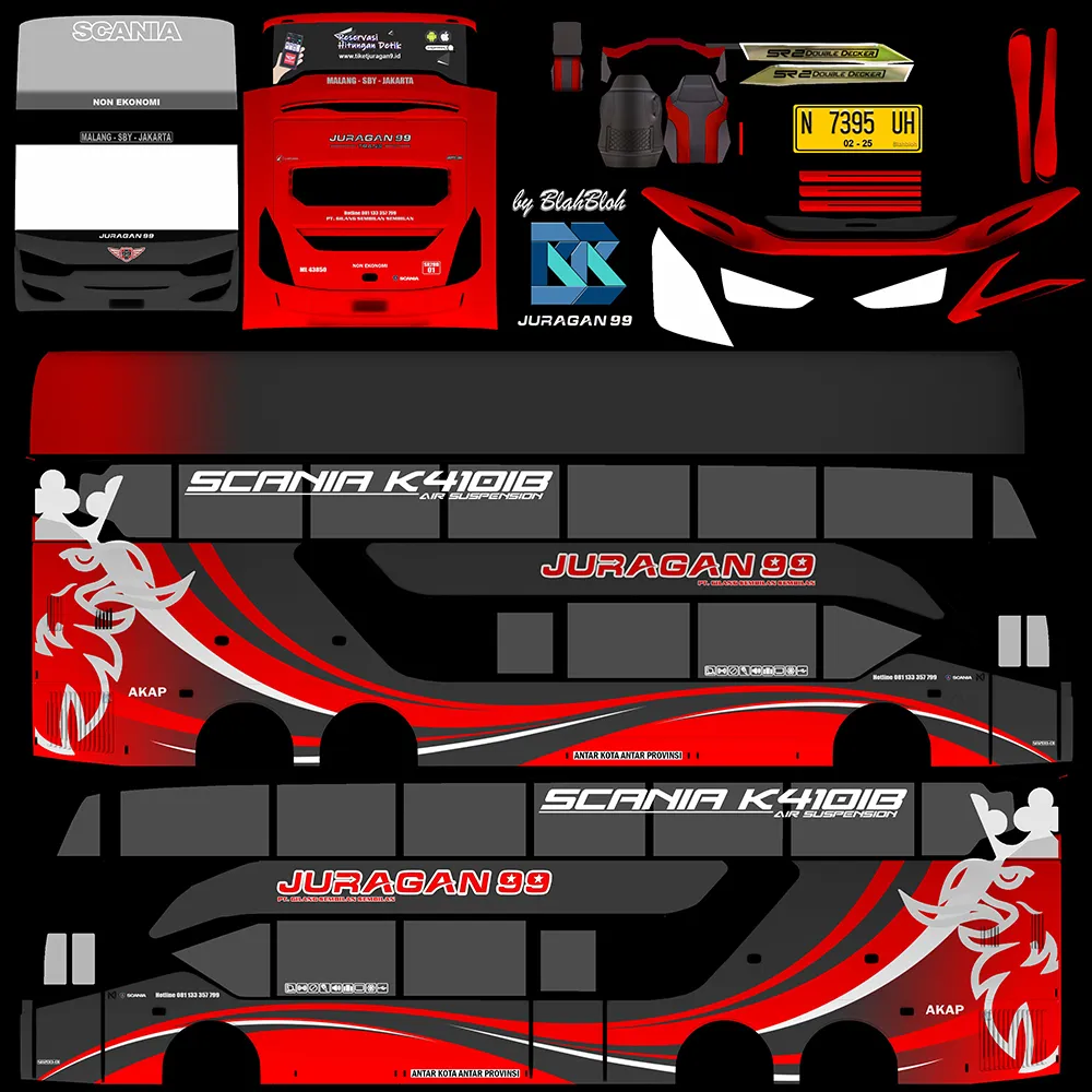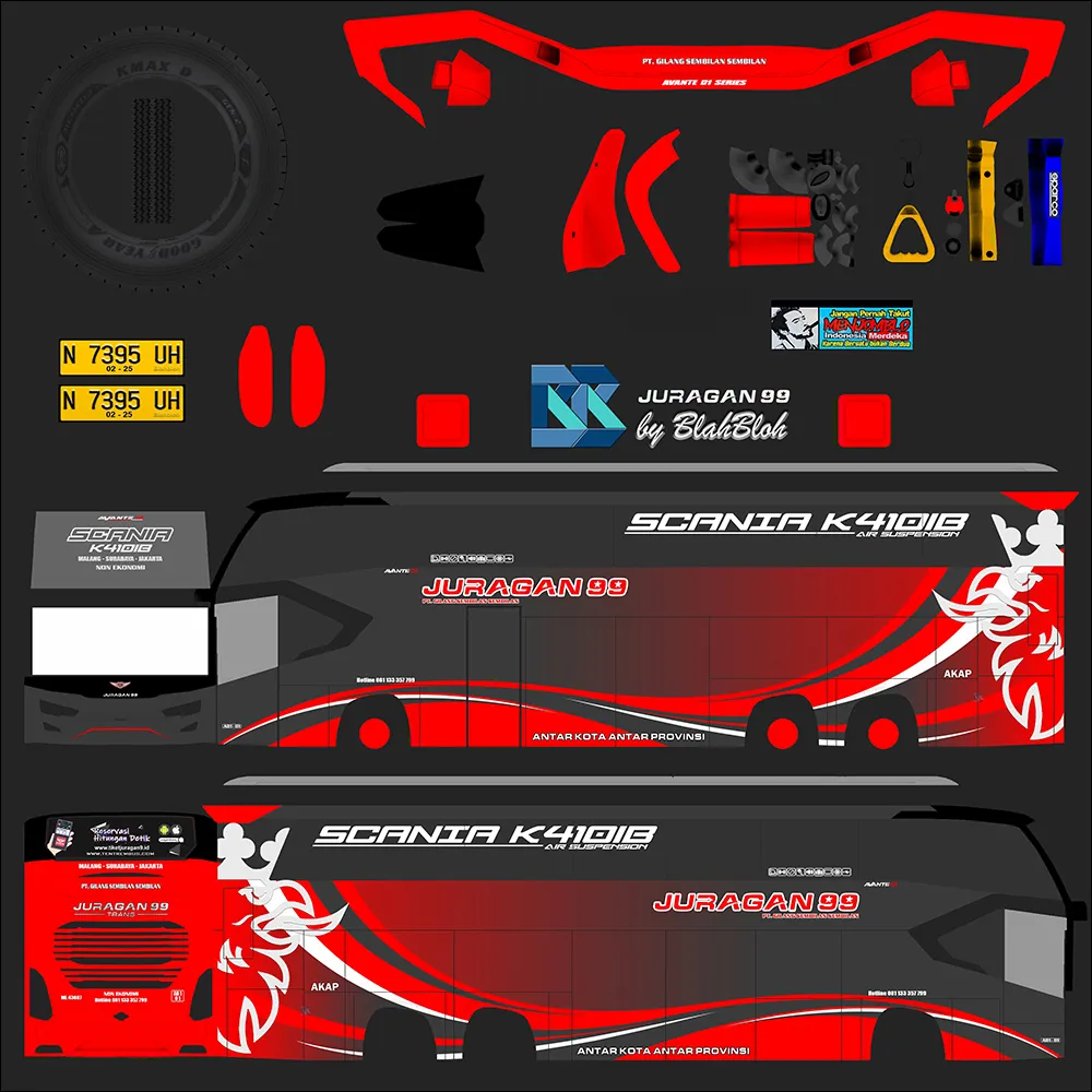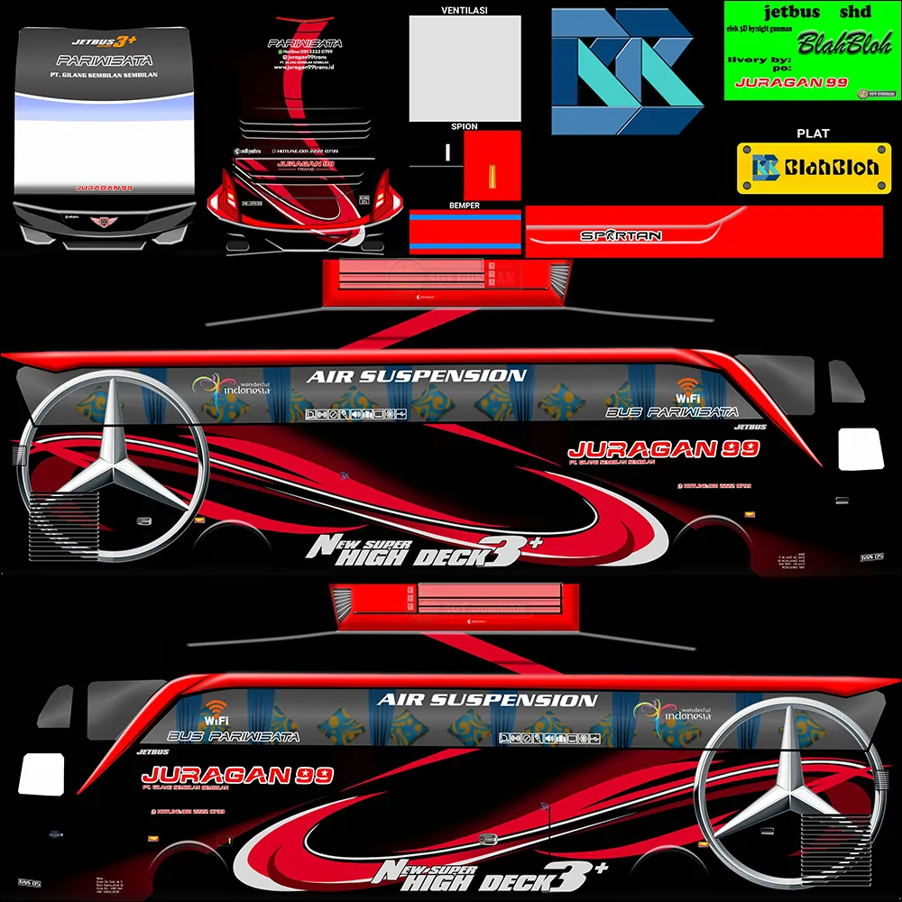 Berikut kami bagikan kumpulan Livery BUSSID Juragan 99, varian Trans, STJ, SDD, super jernih, yang bisa kamu pakai gratis