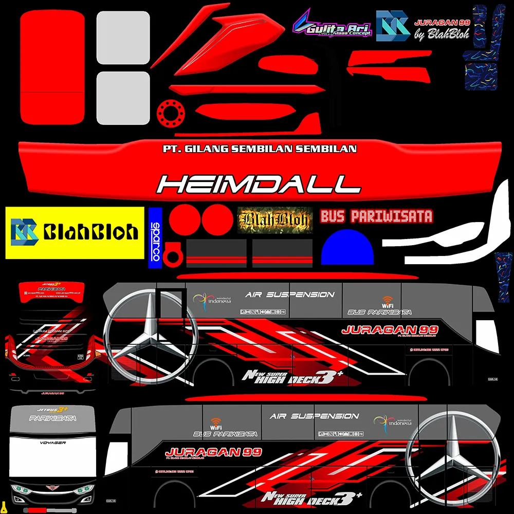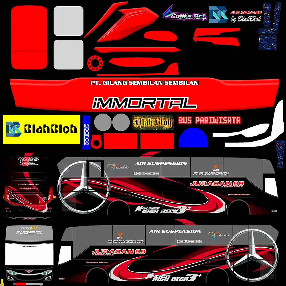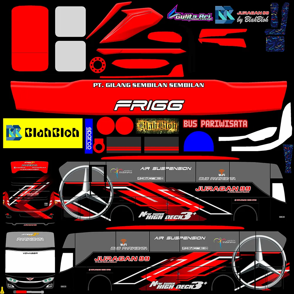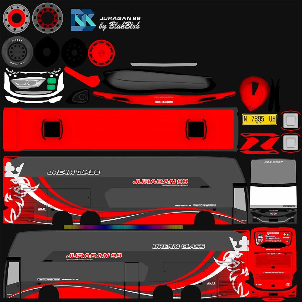 Berikut kami bagikan kumpulan Livery BUSSID Juragan 99, varian Trans, STJ, SDD, super jernih, yang bisa kamu pakai gratis