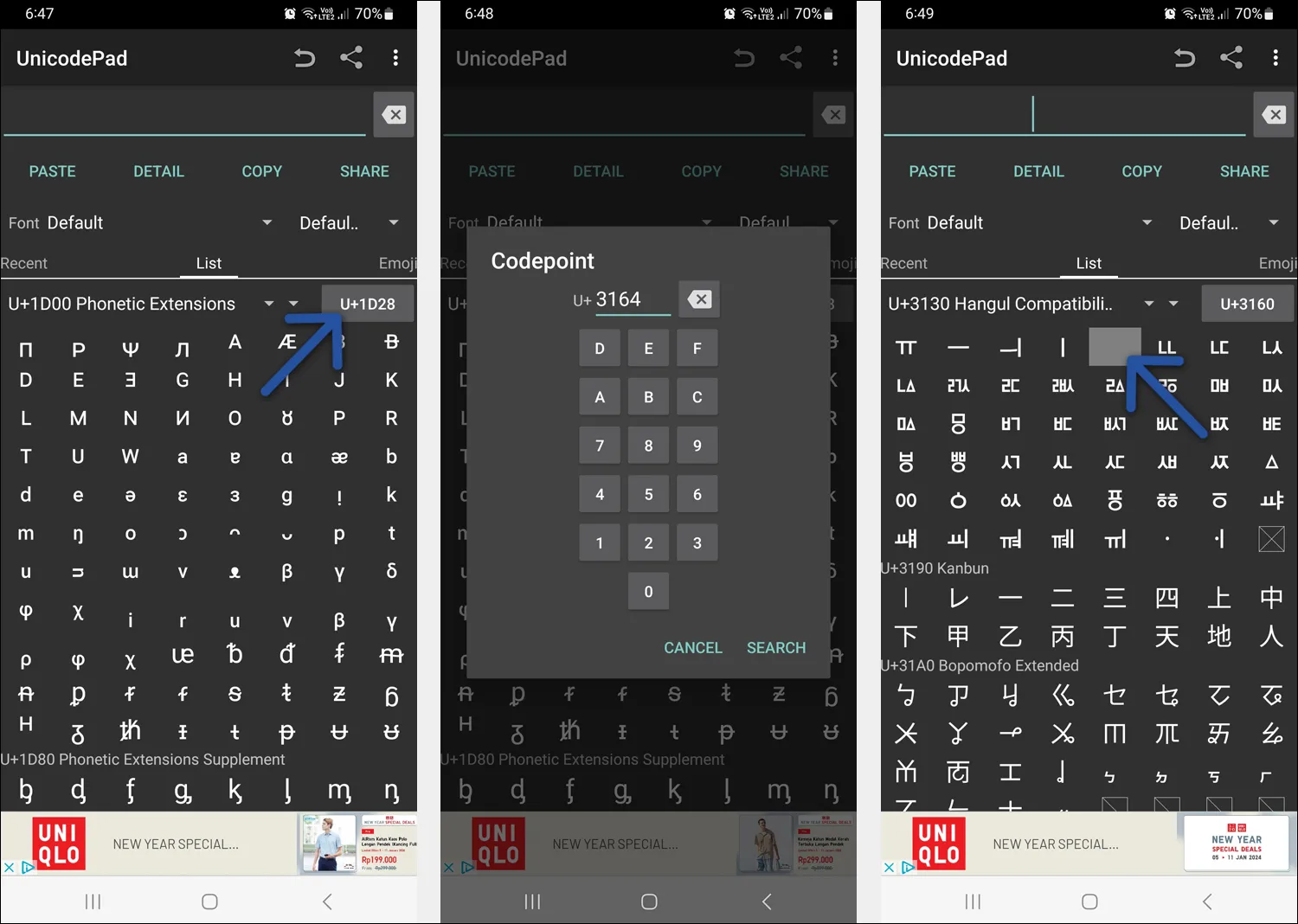 Untuk membuat spasi kosong dengan Unicode Pad, silakan simak dan ikuti langkah-langkahnya di bawah ini.