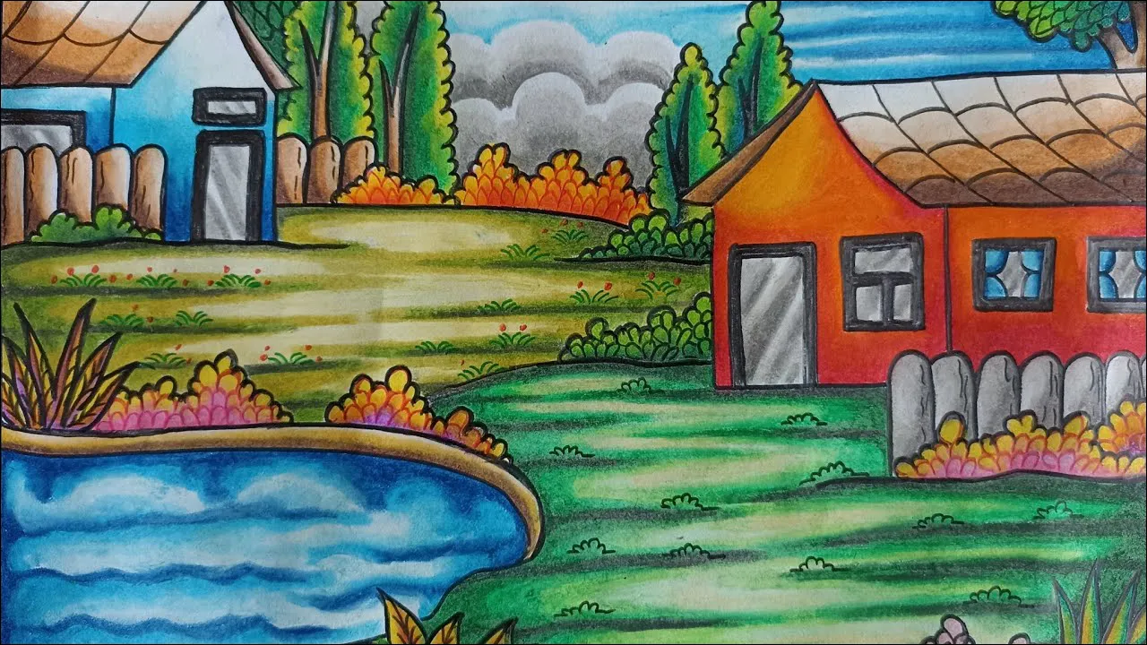 31 Gambar Sketsa Pemandangan Alam, Pedesaan, Gunung, Laut, Mudah Ditiru!