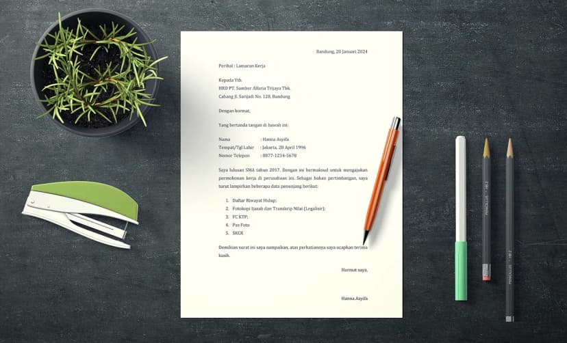 20 Contoh Surat Lamaran Kerja, Beserta Tips dan Format Penulisan Yang Benar