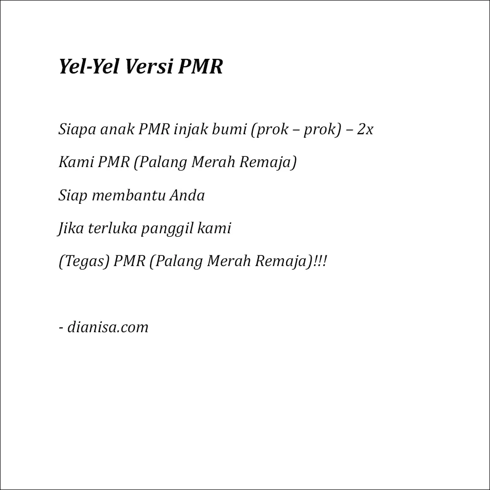 Berikut ini kumpulan contoh yel-yel Palang Merah Remaja (PMR) singkat yang dapat Anda gunakan saat perkumpulan PMR seluruh Indonesia!